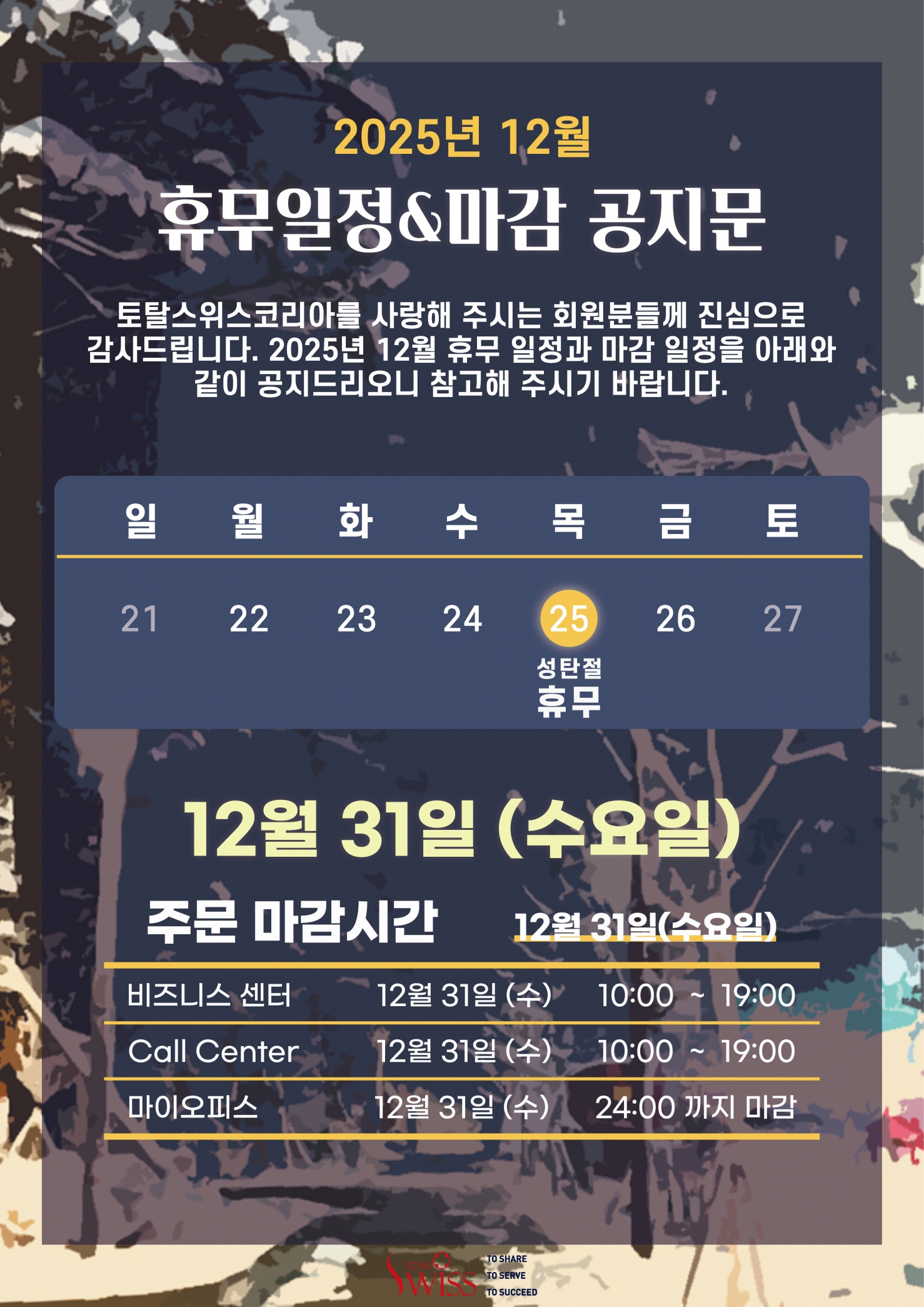 12월 휴무일정&마감 공지문
